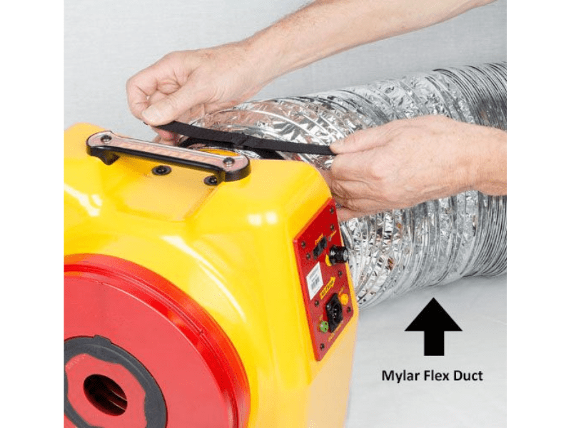 Conducto flexible Mylar Retrotec de 25,4 cm (10″) de diámetro y 3,8 m (12,5′) de longitud para sistemas Retrotec DucTester en pruebas Blower Door.