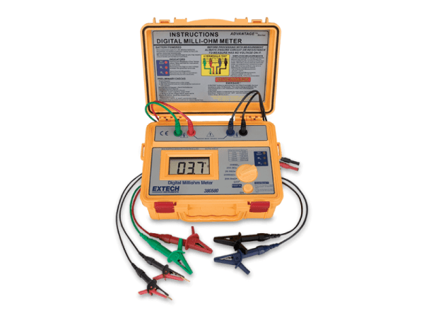 El Extech 380580 es un medidor de miliohmios alimentado por batería. Este medidor de miliohmios cuenta con una alta precisión, un medidor de miliohmios portátil de alta resolución que funciona con batería para uso en campo, mediciones Kelvin de cuatro terminales y protección contra sobrecalentamiento y sobrevoltaje. Certificado CE. Completo con baterías 8AA y 2 juegos de cables de prueba (4 hilos con 4 pinzas de cocodrilo y 4 hilos con 2 pinzas de cocodrilo Kelvin).