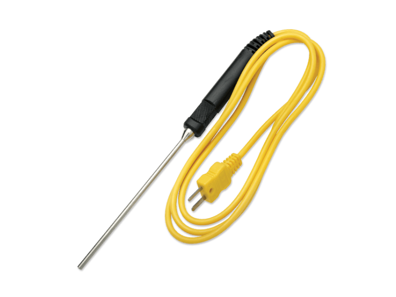 La Extech 871515 es una sonda de temperatura tipo K para uso general que puede medir con precisión temperaturas de -40 °C a 700 °C (-40 °F a 1292 °F). La sonda tiene 100 mm (4 in) de largo, 3,2 mm (0,126 in) de diámetro y está conectada a un cable de 1 m (39 in) con conector mini tipo K, lo que la hace compatible con cualquier dispositivo de medición que admita entradas tipo K. La Extech 871515 cuenta con una garantía de 6 meses.