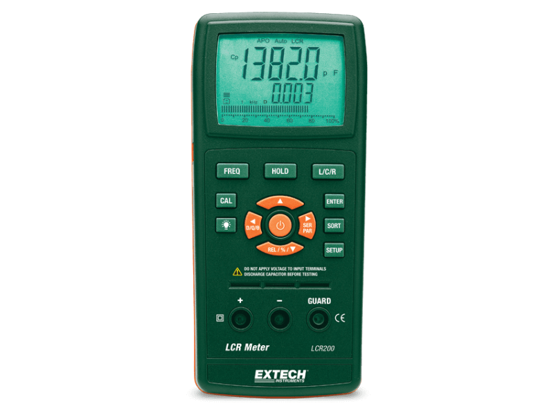 El Extech LCR200 es un medidor de LCR de componentes pasivos. Descubra el tremendo valor con una gama de funciones que ayudan a este medidor a proporcionar las mediciones precisas que necesita. Vea la visualización simultánea con recuento de 20 000/2000 del parámetro principal en la pantalla retroiluminada de alto contraste. Puede establecer límites altos/bajos utilizando valores absolutos o porcentajes. La puesta a cero para interrupciones y cortocircuitos elimina impedancias de parásitos indeseadas de la medición. Utilice el accesorio de prueba integrado o los cables de prueba externos (incluidos). El LCR200 tiene una función de apagado automático que también se puede desactivar y un indicador de batería baja para avisarle cuándo debe reemplazar las baterías. Incluye cables de prueba y batería de 9 V.