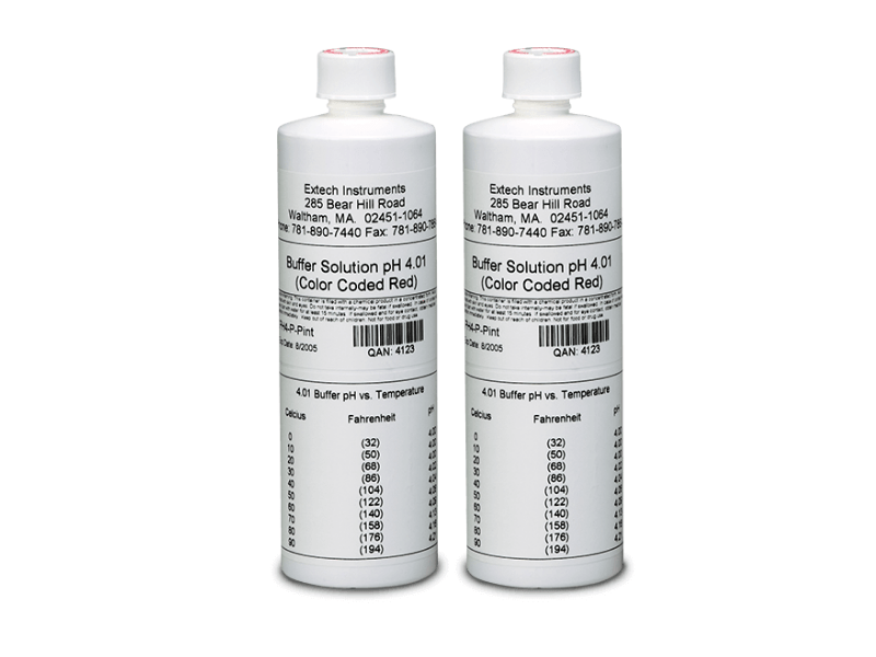 Las PH4-P de Extech son dos botellas de solución de tampón de pH 4. Viene en cómodas botellas de plástico.