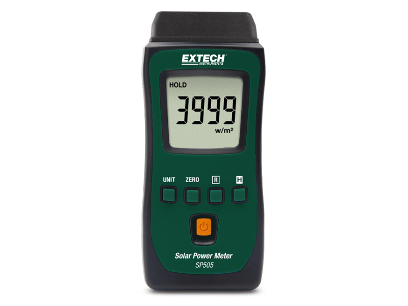 El SP505 de Extech mide el nivel de energía solar de la luz solar en exteriores para determinar la mejor ubicación para la instalación de paneles solares y calentadores de agua solares. También se utiliza en interiores por fabricantes de ventanas, la industria automotriz y propietarios de viviendas en remodelación para comprobar el nivel de transmisión de la radiación solar a través de distintos grosores de vidrio y grados de tintado para su uso en instalaciones de ventanas. Este práctico medidor de bolsillo con un sensor de luz solar de precisión integrado es fácil de usar dondequiera que vaya.
