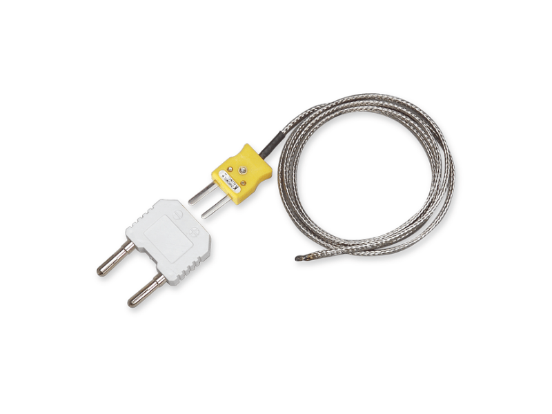 La Extech TP875 es una sonda de temperatura de alambre de talón. Esta sonda de termopar tipo K mide de -50 a 538°°C (de -58 a 1000°°F) con conector subminiatura (mini-ANSI). Viene con un adaptador de clavija de punta cónica y es compatible con la mayoría de los medidores que tienen función de temperatura tipo K.