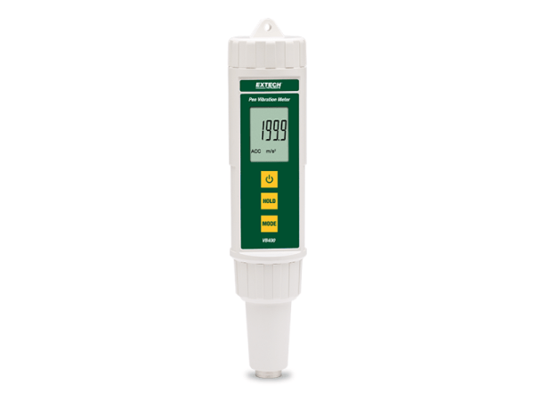 El medidor de vibraciones tipo lápiz VB400 de Extech está diseñado para proporcionar mediciones fáciles y precisas de la velocidad y la aceleración en maquinaria industrial. Mide la aceleración y la velocidad RMS con unidades métricas e imperiales. El VB400 tiene un amplio rango de frecuencia de 10 Hz a 1 kHz y una precisión básica de ± (5 % + 2 dígitos). Otras características adicionales son el ajuste a cero, la retención de datos y un indicador de batería baja. Resistente al agua y al polvo según la norma IP65. Se suministra con punta de prueba, base magnética, 4 pilas AAA y estuche.