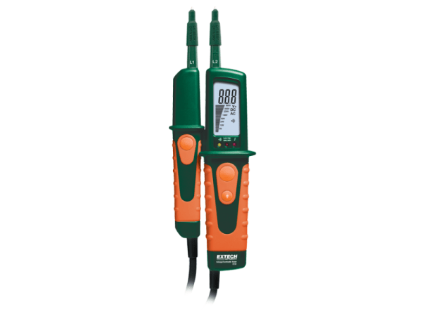 El Extech VT30 es un comprobador de voltaje, continuidad y fase, que cuenta con una linterna incorporada y una pantalla digital retroiluminada con gráfico de barras. Este comprobador resistente está protegido por una carcasa IP64 de doble moldeado y ofrece detección de polaridad con LED para CC positiva y negativa, así como una clasificación de seguridad CAT III 600 voltios / CATIV 600 voltios. El VT30 viene completo con un año de garantía, 2 pilas AAA, tapa protectora y estuche.