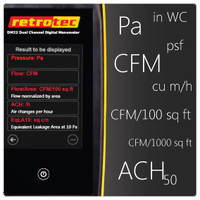 Las diferentes configuraciones de rangos calibrados permiten a un solo ventilador medir una amplia variedad de espacios, desde espacios super herméticos hasta espacios muy permeables. Todos los ventiladores Retrotec se fabrican en plástico ligero extremadamente resistente. Además, los ventiladores son fácilmente reversibles. Se puede pasar de modo presurización a despresurización simplemente girando el ventilador respecto a su eje vertical.